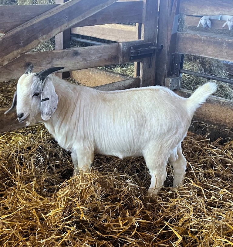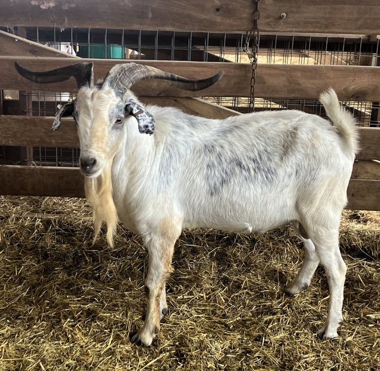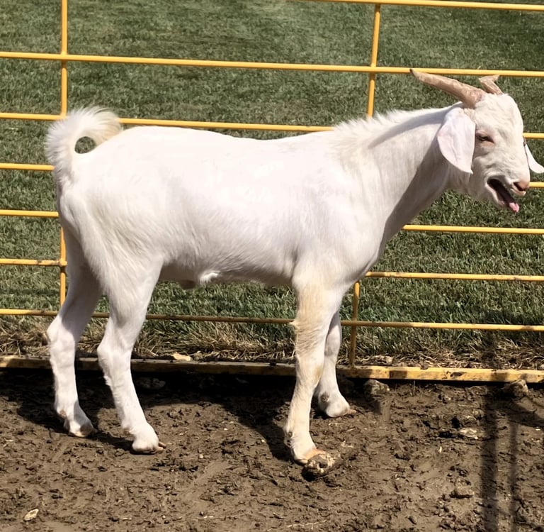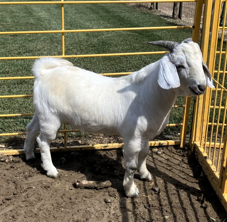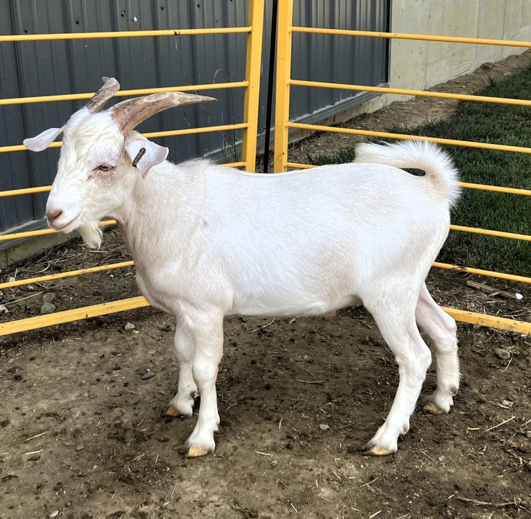 We acquired this buck as part of a herd buyout in 2025. He is a solid performer backed by quality genetics. We also own his twin brother and do not have a need for both of them.