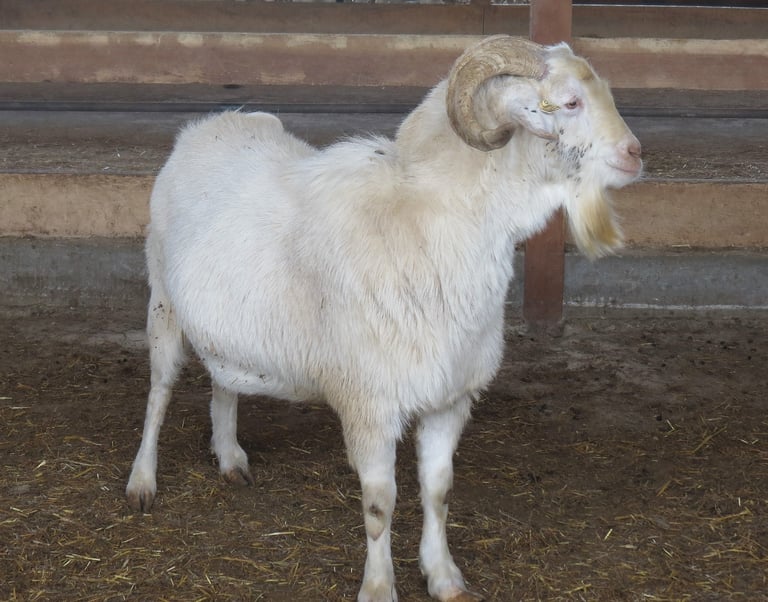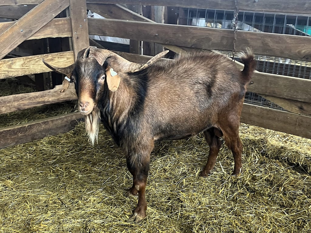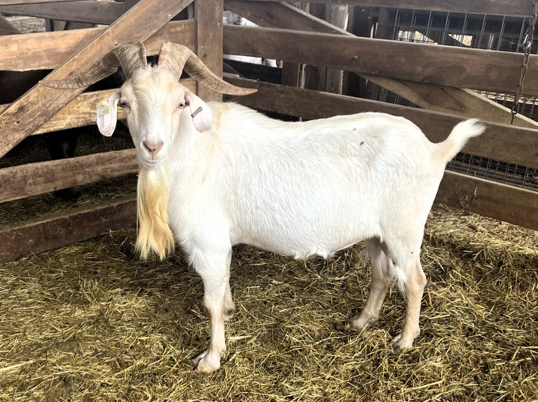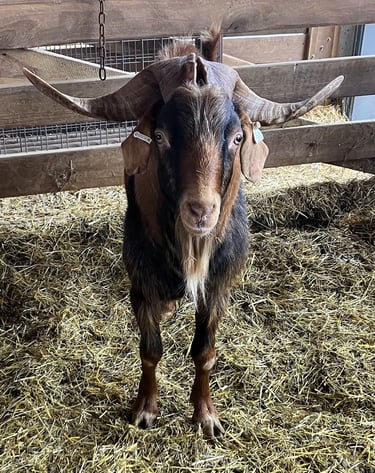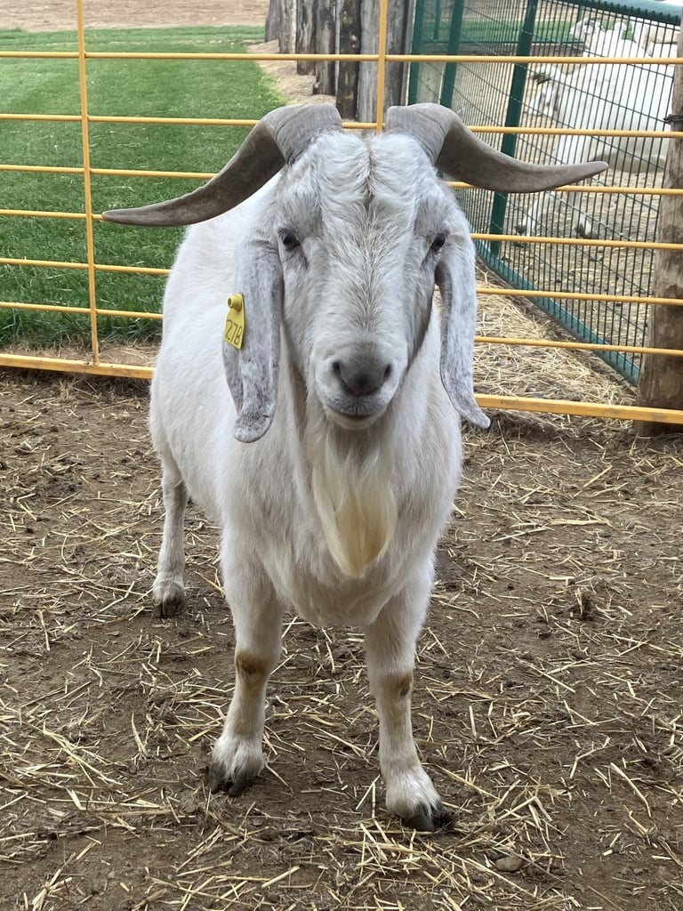 Gurath is a registered purebred American Kiko bred by the reputable Troy Lohman of TNT Farms. We acquired him in 2022 to add height and hardiness to our herd.